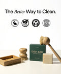 Our Dish Bar eliminates plastic packaging, lasts longer than liquid soap, uses only natural ingredients, and actually saves you money over time while being better for the planet.
